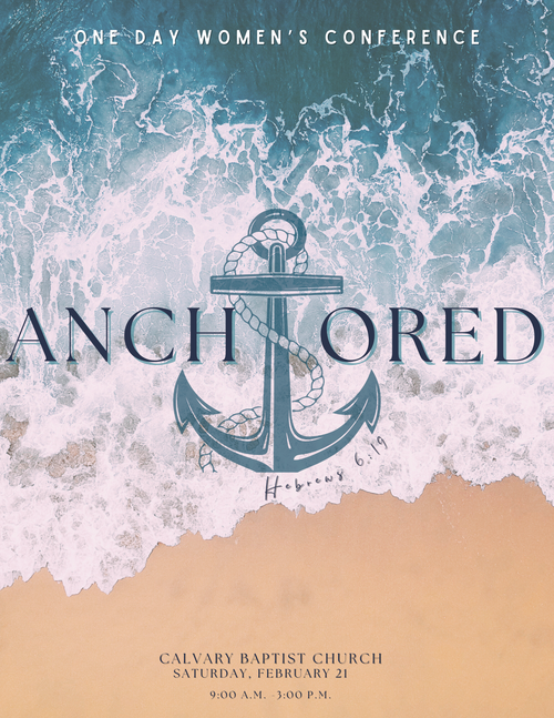 The Anchored Women’s Conference at Calvary Baptist Church in Lansdale, PA is a one-day gathering designed to help women rediscover the steadfast hope that holds us firm no matter what comes our way. Through worship, studying God's Word together, prayer, and community, we’ll explore what it means to live with our hearts secured to the unchanging truth of Christ.