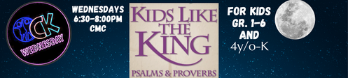 What we are Learning: Join us for Wednesday nights as we look into the Psalms and Proverbs to answer the qeustion: "What does it look like to live like a "Kingdom Kid?"
